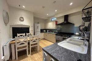 A further door takes you into the large dining kitchen which has a good range of units, cupboards and drawers and comprises a range cooker, dishwasher, fridge-freezer, microwave and coffee machine (with complementary coffee pods) and a small 4-seater kitchen table.