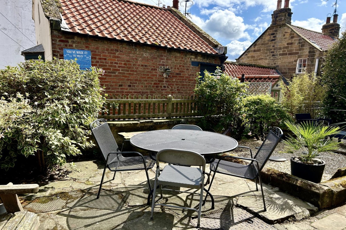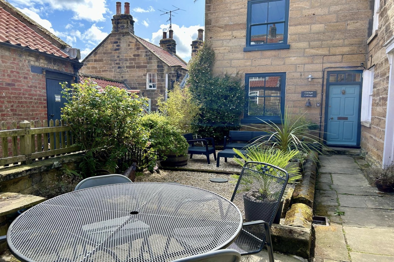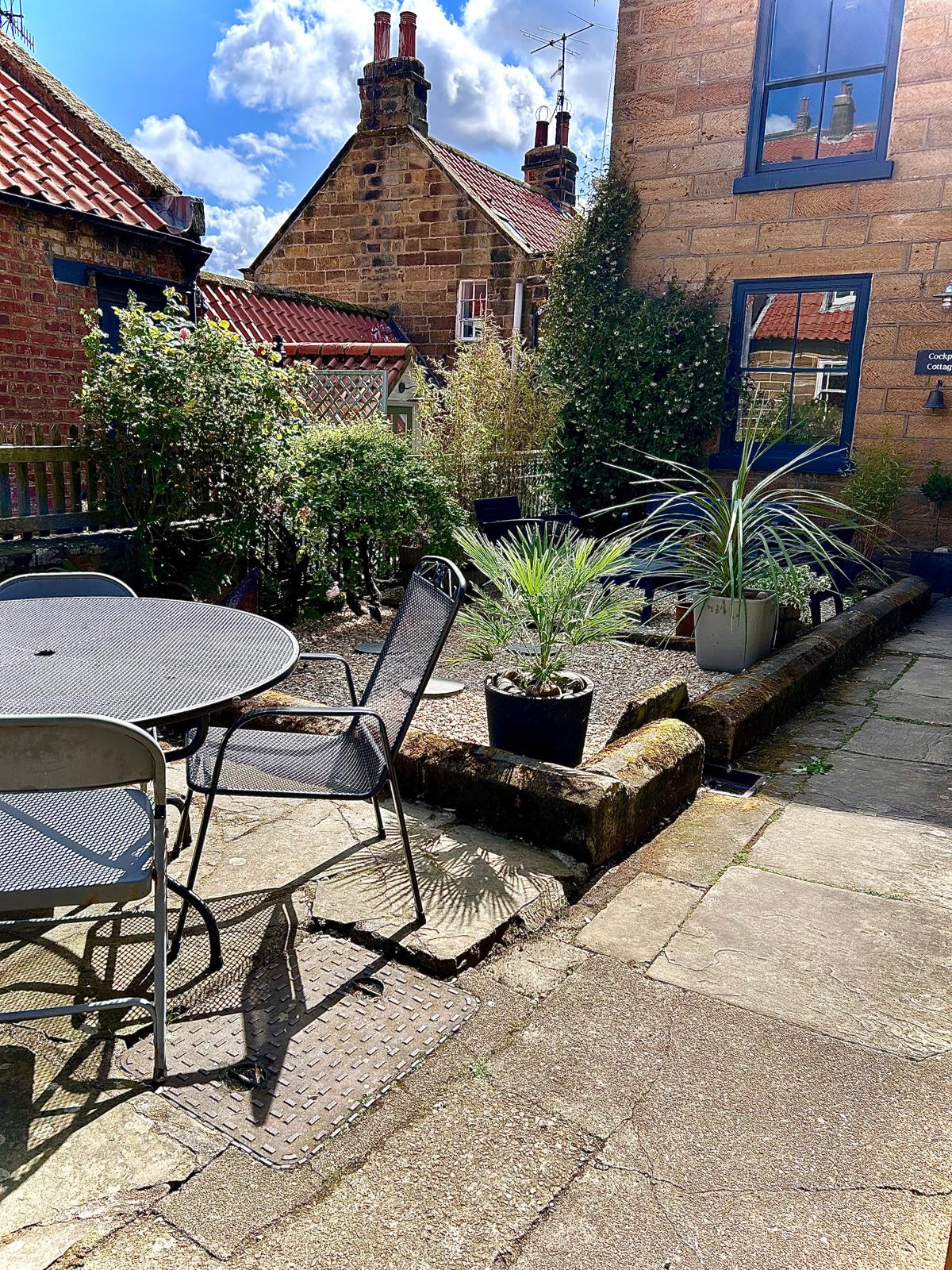 Outside, there is a lovely garden which is particularly spacious for Robin Hood's Bay. It comprises a gravelled pot garden with wooden bench, low level table and chairs, mature shrubs and a paved patio with table and chairs. The garden is enclosed by a small picket gate which leads out onto New Road. It's worth noting that there are very few cottages in the lower village that have any outside space at all and this makes the garden at Cockpit Cottage all the more sought after.